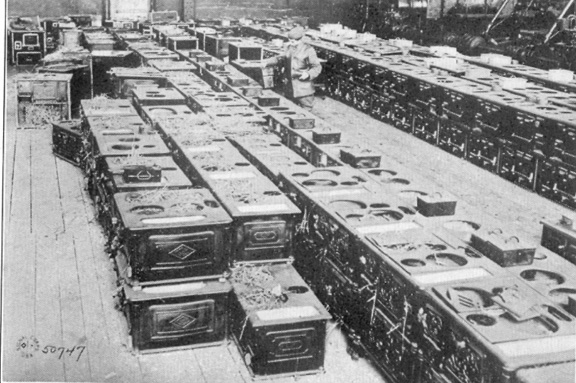 72. To give an idea of the enormous quantities of supplies handled by Negio stevedore regiments, here is a photo of a few cook stoves that came in one shipment.