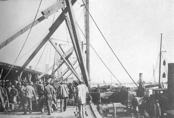 73. On the Docks at Brest, another French port where colored steveclore regiments were the chief reliance getting supplies through to the boys at the front.