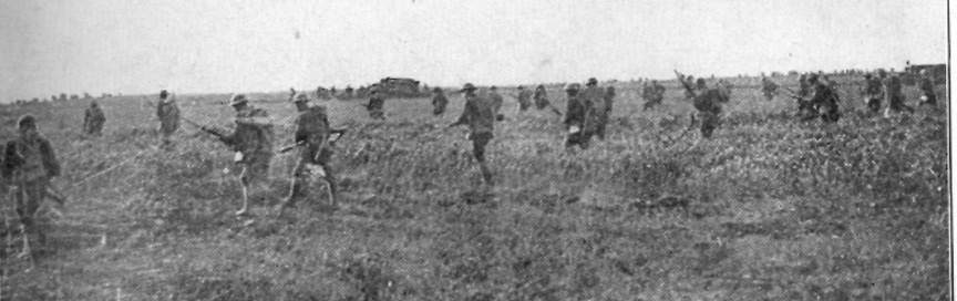79. What real war looks like. Photograph of American Negro soldiers going into action in the attack on Cantigny. American Infantry is co-operating with French tanks.