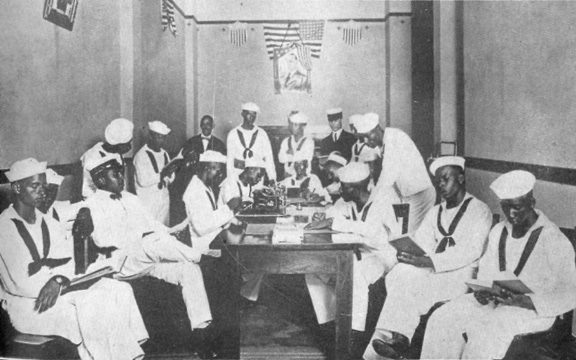 106. Negro Sailors enjoying a few hours' "liberty" in the restrooms, American Red Cross Headquarters, New Orleans.
