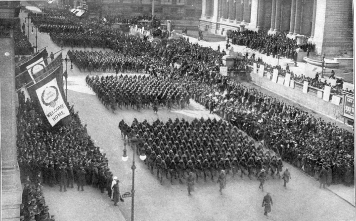 111. Chicago homecoming of the 370th Regiment (Old 8th l1linois) passing in parade at 13th St. and Michigan Ave.
